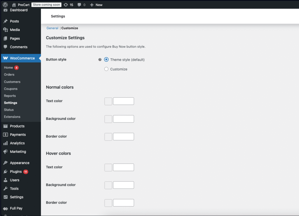 Go to WooCommerce → Settings → Buy Now → Customize to customize the button.